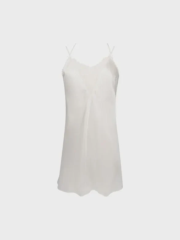 Elegant Silk Nightie with beautiful guipure embroidery detaling on the straps and the back. Thin crisscross adjustable straps. Perfect for bridal wear wear.