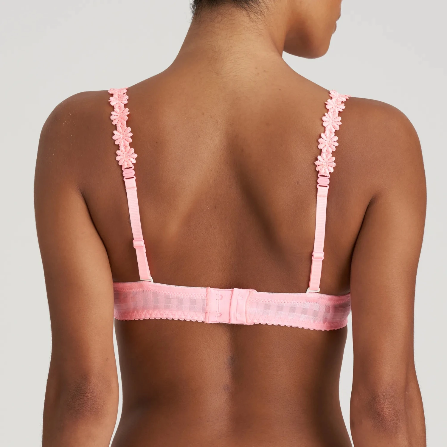Pre-formed padded balcony bra. The center panel between the breasts sits a little higher. Wear the straps straight over the shoulders or around the neck. Pink Parfait is a flirty pastel pink color that is really on-trend right now.