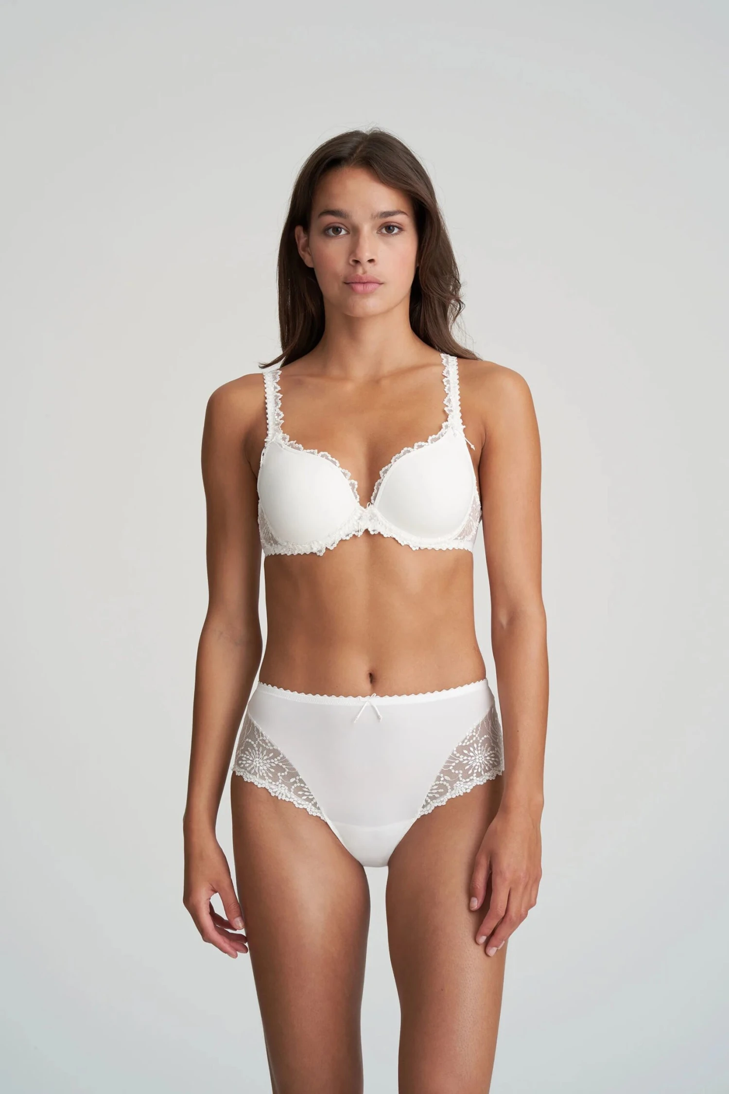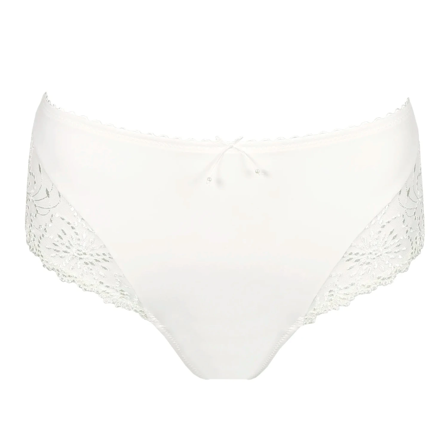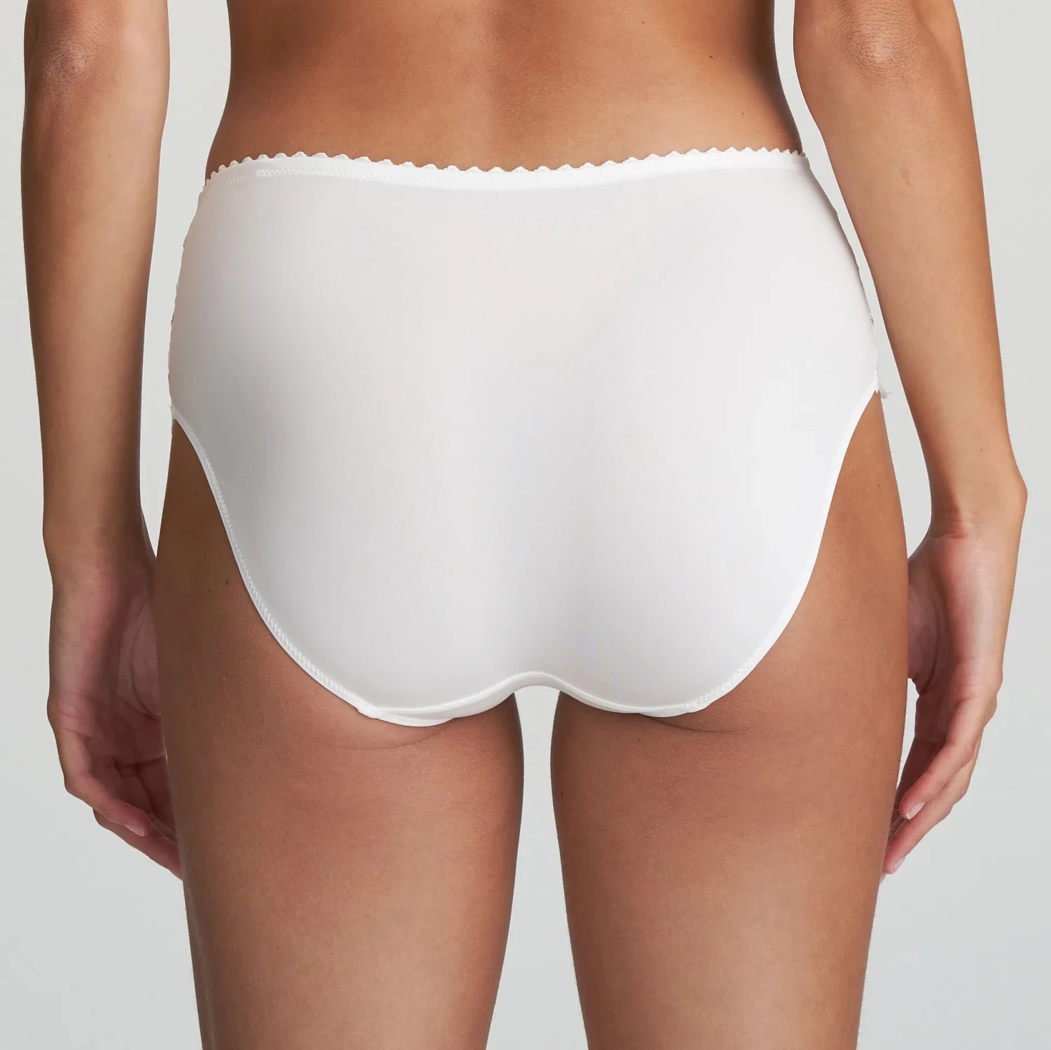 Elegant high-waisted briefs with shimmering embroidery that creates a light and feminine look that lengthens your silhouette.