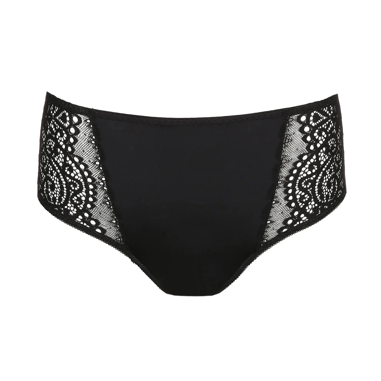 Vintage high-waisted briefs in a shimmery satin fabric with trendy nineties lace on the back and side panels.